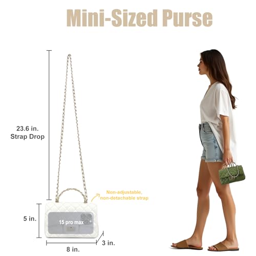Origin: ImportedClosure type: Twist LockLining: Faux LeatherItem Display Dimensions: 8 x 4.98 x 3 inches【Eye-Catching Gold Tone Chain Handle Design】One standout feature of this mini shoulder bag is its trendy chain-style top handle. Wrapped in soft leather strap, the gold-tone chain metal frame offers both style and comfort,allowing the bag to double as a chic handbag. The gleaming gold chain handle complements the gold chain shoulder strap, making you the center of attention wherever you go.【Soft and Smooth Leather】This crossbody bag from M-IOI-M is crafted from high-quality calfskin leather, offering a smooth feel and a soft, comfortable texture. The bag is not only compact and charming but also exudes a sense of premium luxury.【Timeless Fashion with Classic Quilted Design】This M-ioi-M flap handbag features a timeless quilted design, paired with a luxurious gold-tone chain shoulder strap and a turn-lock closure. The combination exudes sophistication and elegance, perfect for any contemporary occasion.【Compact, Cute, and Practical】Measuring just 8 inches wide, 5 inches tall, and 3 inches deep, this small handbag is both adorable and functional. Weighing less than 1 lb, it’s lightweight and easy to carry. Despite its size, it can fit essentials like an iPhone Pro Max (up to 6.7 inches), a wallet, lipstick, compact, tissues, and other daily necessities.【Compact, Cute, and Practical】Measuring just 8 inches wide, 5 inches tall, and 3 inches deep, this small handbag is both adorable and functional. Weighing less than 1 lb, it’s lightweight and easy to carry. Despite its size, it can fit essentials like an iPhone Pro Max (up to 6.7 inches), a wallet, lipstick, compact, tissues, and other daily necessities. Perfect for everyday use. top-grade materials and excellent craftsmanship ensure long-lasting durability.