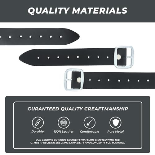 • Adjustable and Secure: The kilt extender strap features 8 holes and is made from 2mm thick premium quality leather, guaranteeing a secure fit and extension by up to 5 inches.