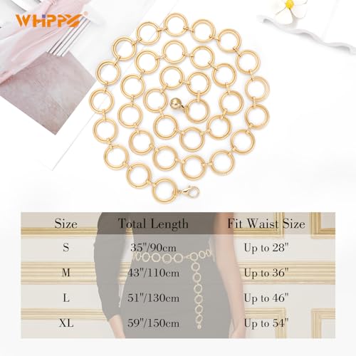 WHIPPY O-Ring Metal Waist Chain Belt Women Fashion Adjustable Body Link Belts for Jeans Dresses