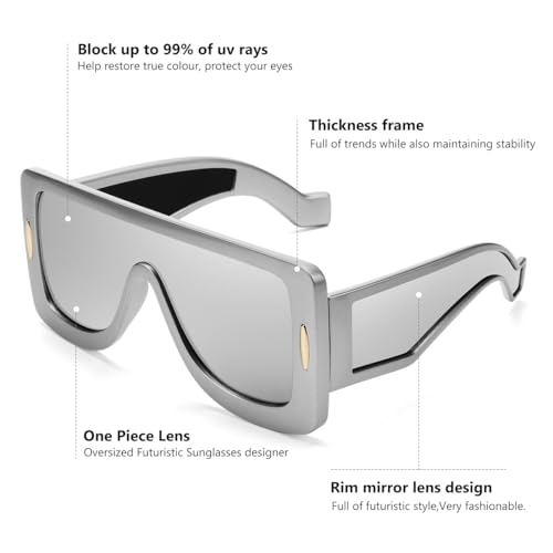 Origin: ImportedFashion Designer Sunglasses - These oversized sunglasses are designed with a bold shield-like lens contour that not only offers a mysterious and charismatic look but also caters to both men and women. The oversized frames and wide legs are a perfect combination of fashion and luxury, making them an ideal choice for high-end accessories and everyday outfits.Premium Quality Materials - GFUIARA shield sunglasses made from high-quality plastic and reinforced metal hinges, these anagram mask sunglasses provide long-lasting comfort and confidence. The unique design ensures a comfortable fit while turning heads wherever you go.UV400 Protection Sunglasses - The lenses of these flat top sunglasses can block 100% of UVA and UVB rays, helping to restore true colors and protect your eyes for a more accurate visual experience.Versatile and sophisticated - Whether you're going to a music festival, party, vacation, shopping, or the beach, these futuristic sunglasses for women will enhance your allure. Suitable for all seasons, they also make a great gift.After-Sales Assurance - If you encounter any issues with our product, feel free to contact us through your Amazon order interface. Your satisfaction is our top priority. Perfect for everyday use. superior materials and excellent craftsmanship ensure long-lasting durability.