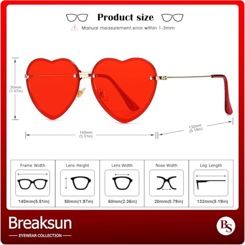 • WIDELY USE: Rimless heart eyewear faultless gift for friends & family, these trendy metal frame fancy sunglasses are suitable for prom and party, also for many occasions such as cosplay, Halloween party, dress-up, pool party, Christmas, wedding accessory and even daily wear.