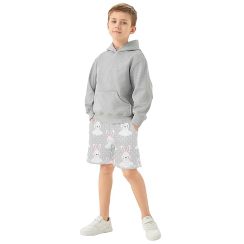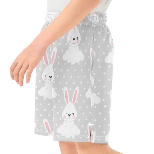 sizzling ! Cute Rabbits and Clouds Athletic Shorts with Zipper Pockets, Youth Boys Athletic Running Shorts for Summer