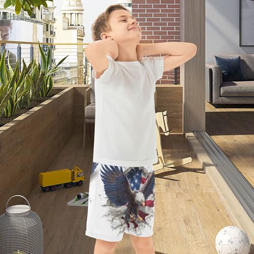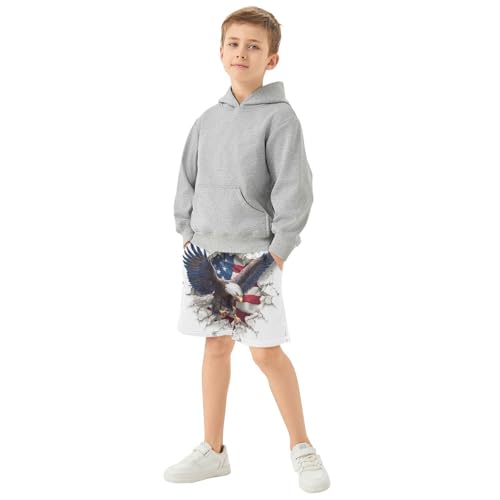 DOMIKING Flag Hawk White Kids Shorts Pull-on Boys Shorts with Elastic Waist Casual Athletic Pants for Outdoor Playwear Summer
