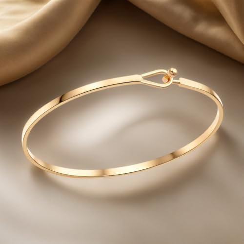 - Skinny bracelet diameter: 2.4 inches. The petite size 18K gold bangle has an oval design with smooth edges, which is safe for you. The dainty bangle has a hook and catch closure making it both pleasant and easy to put on and take off. Delicate yet robust; dainty yet strong; works for all ages.