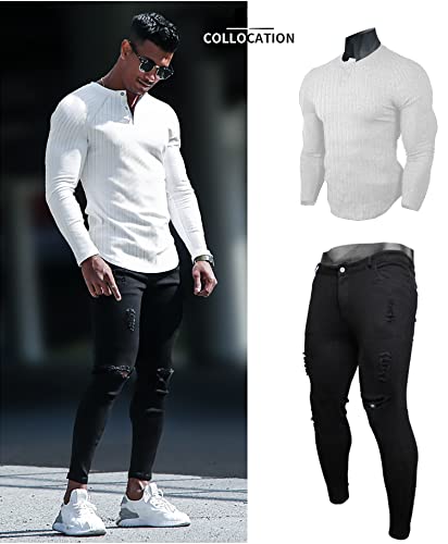 Muscle Cmdr Men's Ribbed Henley Shirt Short Sleeve Slim Fit Muscle Shirt Fitted Cotton Casual Long Sleeve