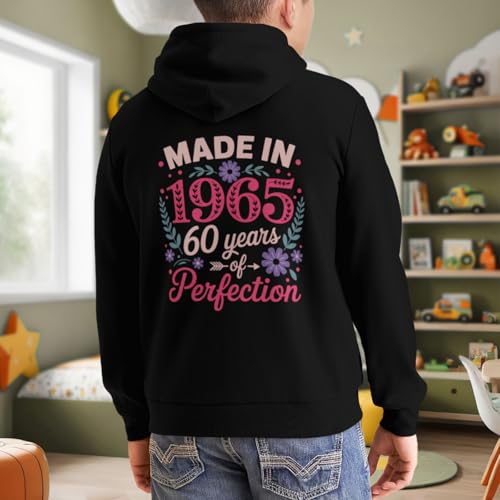 Kids Made in 1965 60 Years of Perfection - 60th Birthday Boys Girls Lightweight Kangaroo Pocket Fleece Hoodies