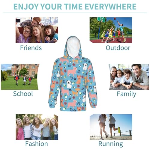 Cute Colorful Puppy Kids Pullover Hoodies Boys Sweatshirts Girls Athletic Clothes with Pocket
