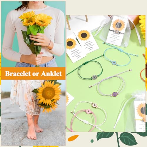Material: PlasticMetal type: No Metal TypeClasp type: NoChain type: Cord ChainGem type: No gemstoneSunflower Thank You Gift Set: You will get 150 pcs inspirational gifts for women bulk, including 50 adjustable sunflower bracelets, 50 thank you cards, and 50 organza bags, abundant in quantity, meeting your different decorative needs, and enough to share with your friendsSunflower Bracelets for Women: These sunflower cute bracelets are made with quality metal and adjustable rope, not easy to fade and break, with a circumference of approximately 5.91 to 11.81 inches, these bracelets can be easily adjusted to fit different wrist sizes; These braided rope sunflower bracelets can be given as gifts to your mother, wife, friend, sisters, friends or others you loveInspiring Cards: The sunflower thank you cards are about 3.3 x 1.85 inches and made from quality paper; these cards are printed with appreciation words to express gratitude and appreciation, and can be applied as heated inspirational gifts for your friends, relatives, neighbors and coworkers to cheer them up during events, such as communions, baptisms, birthdays, weddings, baby showers and so onWide Application: Our sunflower baby shower favors included white mesh bags are made from organza material, ideal for presenting the sunflower bracelet and thank you card as thoughtful gifts, can be widely used in summer parties, birthday parties, baby showers, sunflower theme parties and more, which can also be applied as the party bag fillers, class awards, carnival prizes and more, making your party more interestingSunflower Theme Design: The sunflower baby shower decorations adopt the sunflower theme design, cute and vivid, vibrant hues reflect the happiness, energy, and positivity associated with sunflowers, creating a strong holiday atmosphere, and can be as gifts to express your appreciation Perfect for everyday use. superior materials and excellent craftsmanship ensure long-lasting durability.