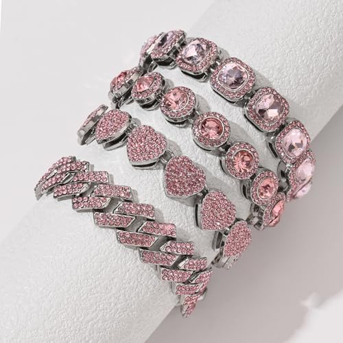 Material: ZincMetal type: ZincClasp type: Cuban ChainGem type: No Gemstone【4 Symbolic Geometric Charms】 Each cuban bracelet embodies feminine energy: Heart (Romance) Square (Confidence) Circle (Harmony) Diamond (Boldness).A heart bracelet, a square tennis chain, a round tennis chain, and a Cuban chain bracelet, Cuban link chain + pendant dual design creates dynamic layers when stacked.【Handcrafted Luxury with Dazzling Sparkle】 Featuring over 500 premium sparkling rhinestones per bracelet (2000+ total), each piece is meticulously handcrafted by skilled artisans. Make a statement with our Chunky Gold Necklace and matching Cuban Link Chain For Women. This Jewelry Set is ideal for layering with Gold Chain Bracelets For Women or iced out Bracelets Accessories For Women.【Hypoallergenic & Comfortable Wear】Crafted from eco-friendly alloys that are lead-free and nickel-free, this bracelet collection is gentle on sensitive skin. The high-quality plating is designed to resist tarnishing, providing comfort and safety for daily wear.【Exceptional Durability & Lasting Shine】 Our reinforced chain links are built to withstand bending and breaking, ensuring longevity. Utilizing advanced plating technology, each piece is protected against scratches and fading, preserving its brilliant shine for years to come.【The Perfect Gift for Every Occasion】This exquisite 4-piece set makes an ideal gift for yourself or a loved one. Celebrate birthdays, anniversaries, or holidays with a timeless accessory that radiates elegance and sophistication.Complete your look with our Tennis Bracelet, a timeless piece that exudes elegance. Whether you prefer Gold Bracelets For Women Stack or a single statement piece, this bracelet is a perfect addition to your Accessories For Women collection. Perfect for everyday use. High quality materials and excellent craftsmanship ensure long-lasting durability.
