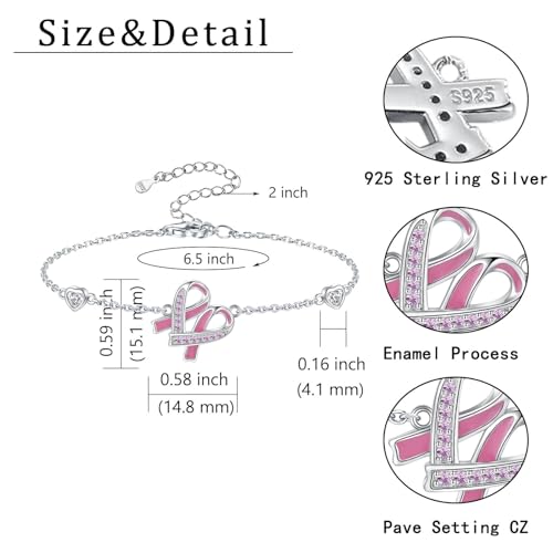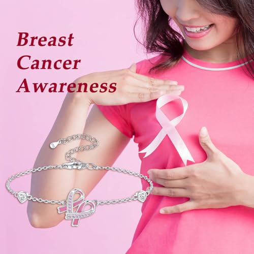 sizzling ! Sterling Silver Breast Cancer Awareness Bracelet Pink Ribbon Bracelet for Women Jewelry Strength Gifts for Cancer Survivors