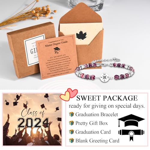 • Graduation Gifts Package: This class of 2025 graduation gift is ready for giving her. Send it to her on graduation day, she must be happy to receive this meaningful gift from you! She will pick up 1x compass bracelet, 1x graduation card, 1x blank greeting card and 1x delicate gift box. impeccable master degree graduation decorations 2025