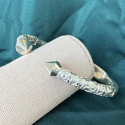 Item display length: 8.5 inchesMaterial: Sterling SilverMetal type: Sterling SilverClasp type: No claspGem type: No gemstoneSolid 925 Sterling Silver: Crafted from 925 sterling silver, this bangle exudes durability and elegance. Nickel free.Extra Thick, Bold, and Heavy Design: At 7.5 mm thickness and approximately 70.8 grams in weight, this bangle is the thickest piece in our collection. Available in sizes ranging from 7.5 to 10, it stands out as a significant statement piece for those who appreciate bold jewelry.Traditional Caribbean Aesthetic: Inspired by classic West Indian designs, this bangle embodies the cultural essence and heritage of Caribbean style, adding a touch of authenticity to your jewelry collection.Perfect for Every Occasion: Ideal for both men and women who love bold silver jewelry, this piece makes an impressive gift for Christmas, birthdays, Valentine’s Day, or anniversaries. It comes in a gift box, and ready to present.Handcrafted in Brooklyn, USA: Each bangle is meticulously handmade by skilled artisans, ensuring exceptional quality and craftsmanship in every piece, proudly made in the USA. Perfect for everyday use. superior materials and excellent craftsmanship ensure long-lasting durability.