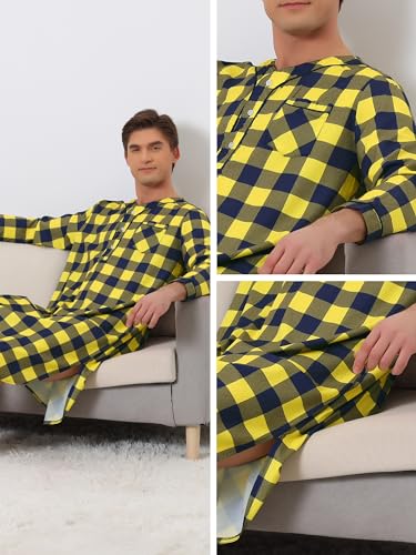 More information about Lars Amadeus Plaid Nightshirts for Men's Henley Sleepwear Checked Nightgown Long Pajamas