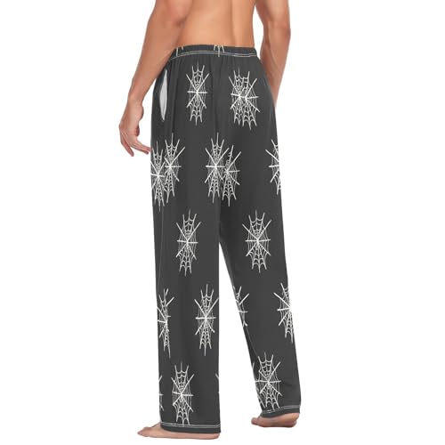 Qilmy Halloween Spider Web Men's Cotton Pajama Pants, Lightweight Lounge Sleepwear with Drawstring and Pocket