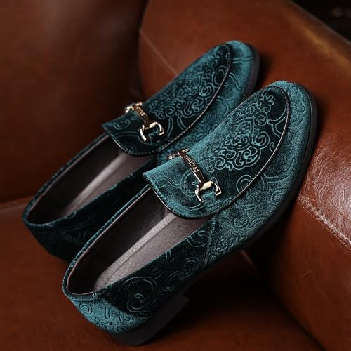 COSIDRAM Men's Velvet Penny Loafers Luxury Vintage Jacquard Pattern enduring Gold Buckle Party Prom Dress Shoes