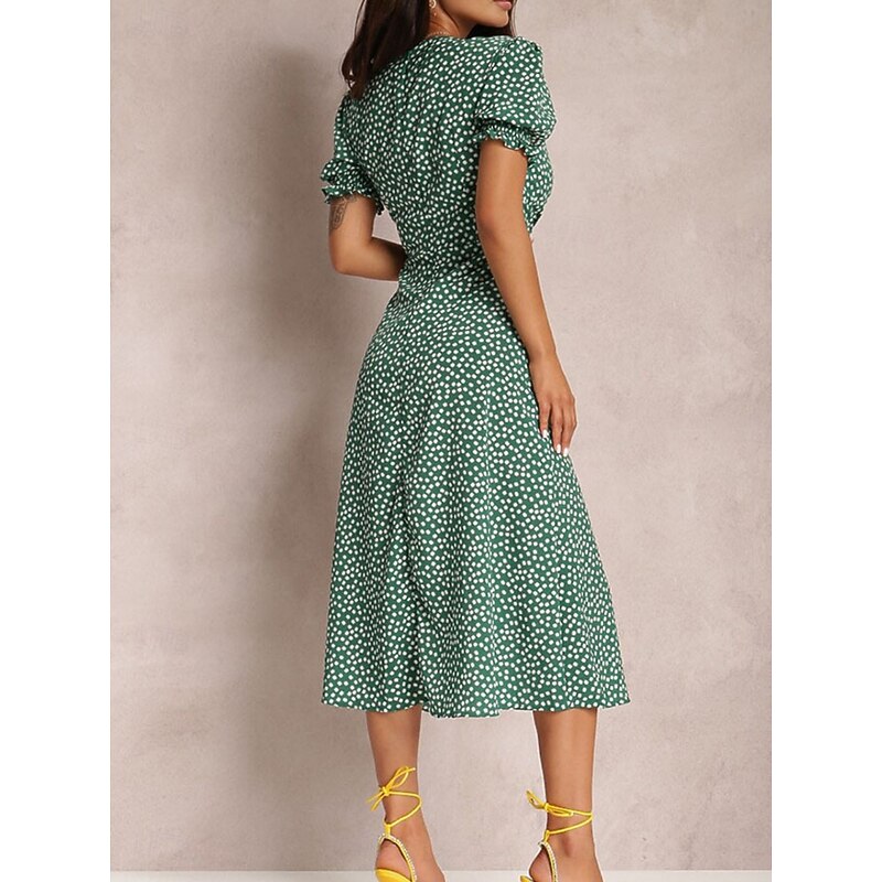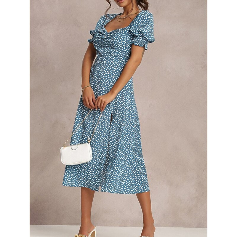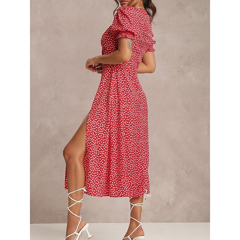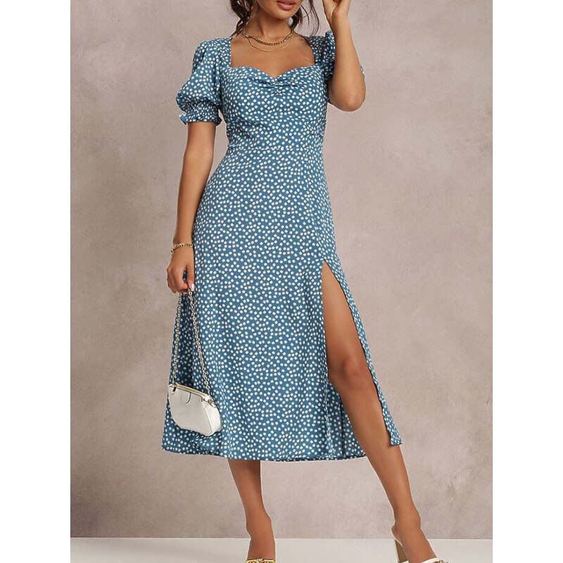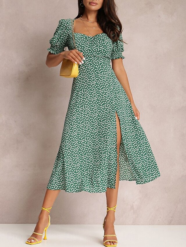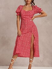 More information about Women's Midi Dress Casual Dress A Line Dress chic Casual Vacation Daily Regular Fit Floral Short Sleeve Square Neck Red Green Light Blue Summer