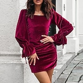 Why Choose Women's Mini Dress Velvet Dress Prom Dress Elegant Fashion current Party Evening Party Regular Fit Plain Long Sleeve Square Neck Off Shoulder Black Pink Wine Khaki Spring Fall?