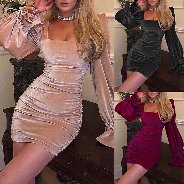 This Women's Mini Dress Velvet Dress Prom Dress Elegant Fashion current Party Evening Party Regular Fit Plain Long Sleeve Square Neck Off Shoulder Black Pink Wine Khaki Spring Fall combines elegant design with practical functionality. Every detail has been carefully considered to ensure you get the best possible experience. The supreme construction means this product will serve you well for years to come.