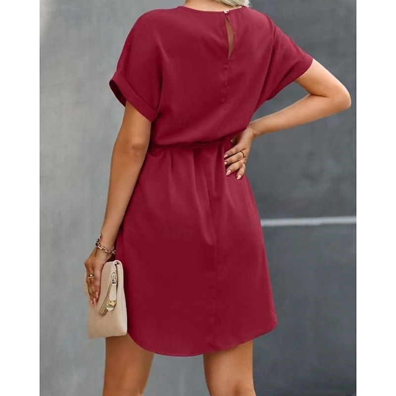 This Women's Mini Dress Satin Dress Fashion present-day Outdoor Vacation Holiday Regular Fit Plain Short Sleeve Crew Neck Wine Blue Dark Green Green Summer Spring Fall combines elegant design with practical functionality. Every detail has been carefully considered to ensure you get the best possible experience. The premium construction means this product will serve you well for years to come.