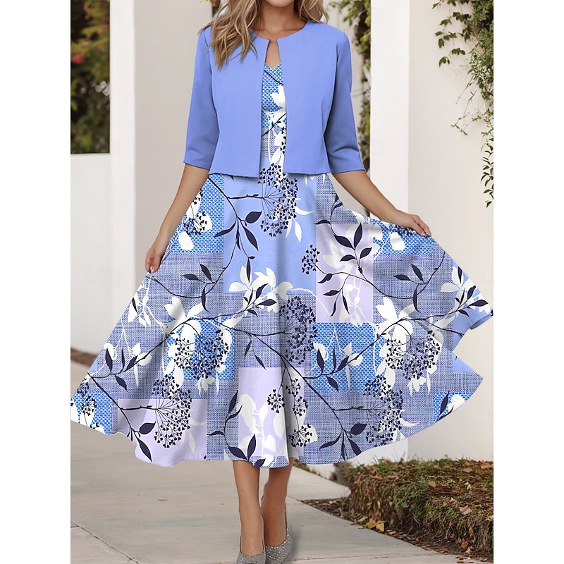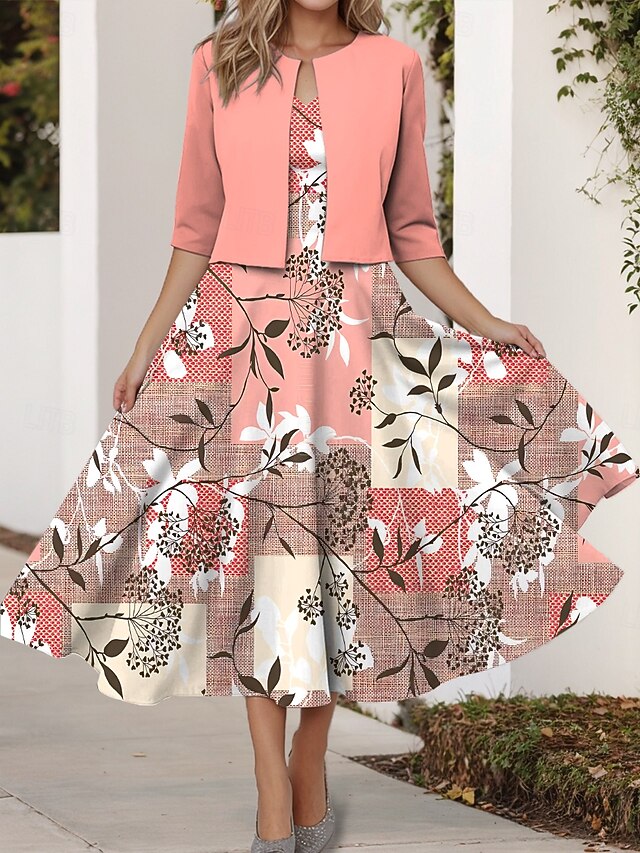 This Women's Two Piece Dress Sets Midi Dress with Jacket Elegant A Line Dress Half Sleeve Party Semi Formal Floral Graphic Print V Neck Wedding Guest Daily Pink Blue Purple Regular Fit combines elegant design with practical functionality. Every detail has been carefully considered to ensure you get the best possible experience. The outstanding construction means this product will serve you well for years to come.