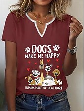 More information about Women's T Shirt Henley Shirt Basic Dog Letter Print Short Sleeve Regular Tops Round Neck Daily Weekend Black White Red