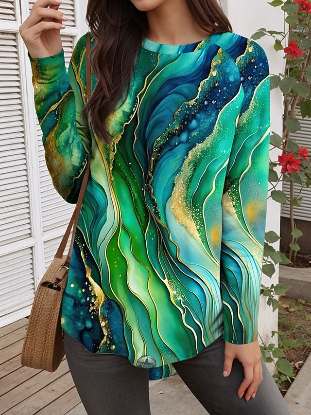 This Women's T Shirt Graphic Geometric Abstract Vintage Casual Long Sleeve Crew Neck Long Tops Daily Weekend Print Red Blue Purple Green Summer Spring Fall combines elegant design with practical functionality. Every detail has been carefully considered to ensure you get the best possible experience. The remarkable construction means this product will serve you well for years to come.