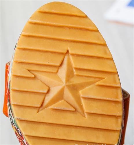 • excellent Material: Durable and soft man-made PU upper with non-slip rubber sole. Ethnic style designed to withstand years of wear and tear. Allows you to walk more comfortably and stand for hours without straining or losing your balance. Wedge height is 4 inches, comfortable and lovely