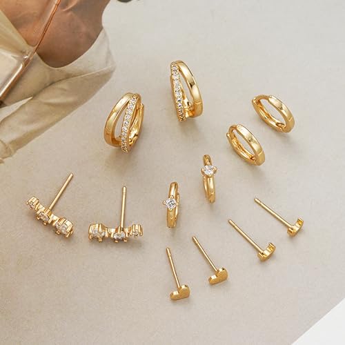 sizzling ! Small Gold Hoop Earrings for Women Dainty Gold Earrings, 14K Gold Plated Hypoallergenic Stud Earrings Set Cartilage Earrings for Multiple Piercing for Women
