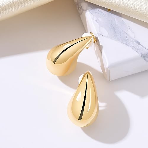 Gold Drop Clip On Earrings Dupes Teardrop Chunky Non Pierced Earring 14K Real Gold Plated Hypoallergenic Lightweight Earrings for Women(Gold and Silver)
