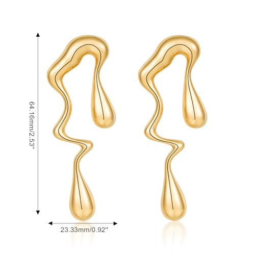 Material: Stainless Steel, BrassMetal type: Yellow GoldBack Finding: Hinged HoopEarring design: DangleGem type: No GemstoneItem type name: Earrings【Irregular Earrings Design】The geometric elements of these earrings create a latest and trendy aesthetic, adding a touch of individuality to your outfit. The irregular shape and dangling style make these earrings eye-catching and versatile, suitable for both casual and formal ensembles.【Materials】 These Gold Statement Earrings are made of durable brass and plated with 14k gold and it's no tarnishing,no green skin,ensuring long-lasting beauty and quality craftsmanship.【Any Occasion】These Women Gold Earrings are appropriate for the office, school,for a tee shirt and jeans at the park or a more casual date night, or to a wedding, etc.【Perfect Jewelry Gift】Perfect idea gift to yourself,Girlfriend, Wife, Daughter, Mom, sister for Valentine’s Day, Birthday, Anniversary, Christmas, Mother's Day, Graduation,etc.【Shop Now】If you have any problems of this gold earrings, please free to contact us any time.We will solve your problem within 24 hours. Perfect for everyday use. superior materials and excellent craftsmanship ensure long-lasting durability.
