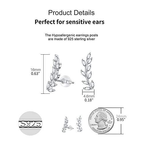Material: Silver, White Gold Plated, Sterling SilverMetal type: SilverBack Finding: Push BackEarring design: ClimberGem type: Cubic ZirconiaItem type name: Stud Earrings♥Leaf Stud Earrings Parameters - Size: 0.63 * 0.18 in(16mm*4.6mm), weight: 1g. The leaf ear climbers earrings are the perfect size for women, can be used as Cartilage earrings too♥Fashion Ear Climbers Earrings for Women - The shiny cubic zirconia makes the silver stud earrings more eye-catching. Ideal for any occasion, like daily wear, party, banquet and so on♥Hypoallergenic Crawler Earrings - 925 sterling silver posts, lead free, nickel free, and hypoallergenic. Sensitive ears can wear these climber earrings for women comfortably♥Gift for Women - Our lightweight leaf crawler earrings are packed in attractive gift box. It is wonderful gift for Mother's Day, Valentine's Day, Thanksgiving Day, Christmas, Anniversaries, Wedding, Graduation and Birthday gifts for women, yourself, mother, wife, aunts, sisters, best friends♥Customer Service - If you have any problems, please feel free to tell us. Your happiness is our first priority Perfect for everyday use. top-grade materials and excellent craftsmanship ensure long-lasting durability.