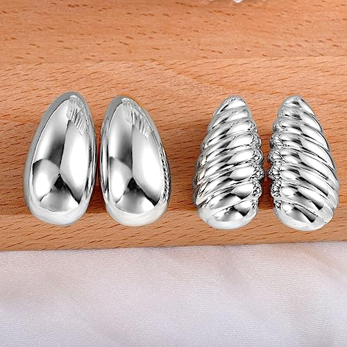 Teardrop Clip On Earrings Dupes Earring for Women Chunky Hoop Earrings Hypoallergenic Lightweight Dangle Water Drop Earring Set for Women