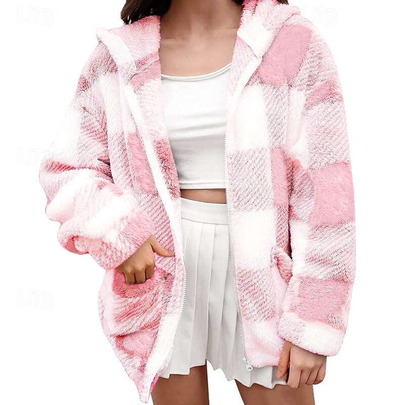 This Women's Casual Jacket Hoodie Jacket Warm cozy Zipper Pocket Outdoor Casual Plaid Vacation Street Going out Zipper Regular Hooded Regular Fit Long Sleeve Outerwear Black Pink Red Fall Winter combines elegant design with practical functionality. Every detail has been carefully considered to ensure you get the best possible experience. The premium construction means this product will serve you well for years to come.