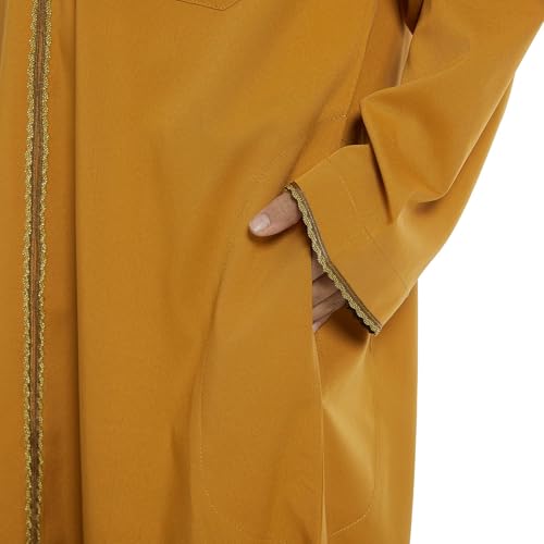 More information about Boys Muslim Kaftan Kids Long Sleeve Muslim Thobe Stand Collar Embroidery Solid Color Eid Robe Prayer Clothes with Pocket
