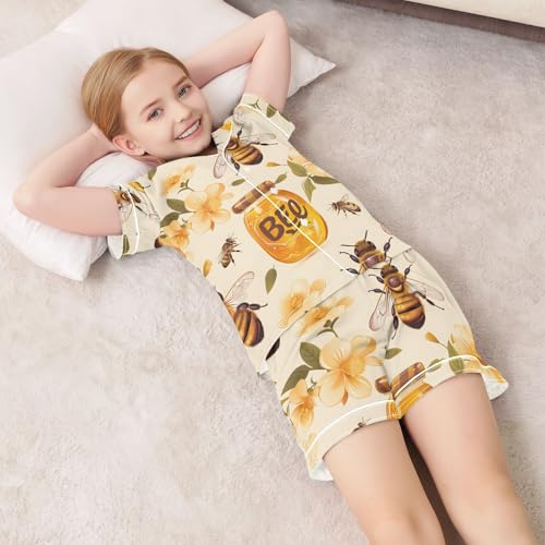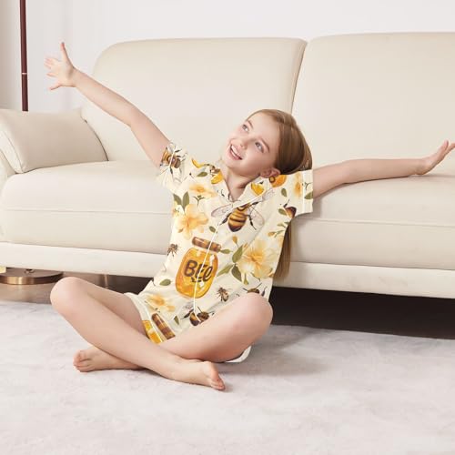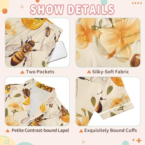 Why Choose ALAZA Blossom Bee Honey Pajamas Satin Pajama Set Short Sleeve Button Down Sleepwear?