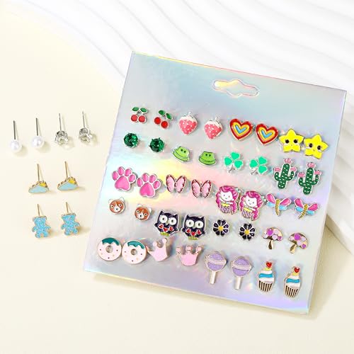 24/30/40 Pairs Cute Funny Hypoallergenic Stud Earrings Set for Women Sensitive Ears With Stainless Steel Mixed Style