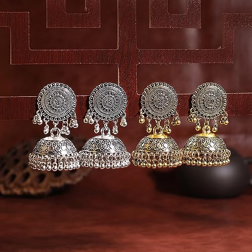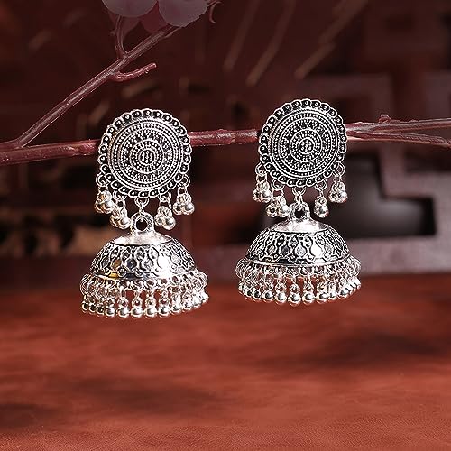 sizzling ! Vintage Jhumkas Indian Earrings for Women Wedding Statement Ethnic Gypsy Dangle Chandelier Earring Bohemian Temple Jhumki Oxidized Antique Bollywood Jewelry Gifts Festival Wear