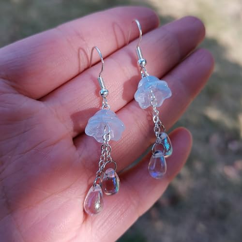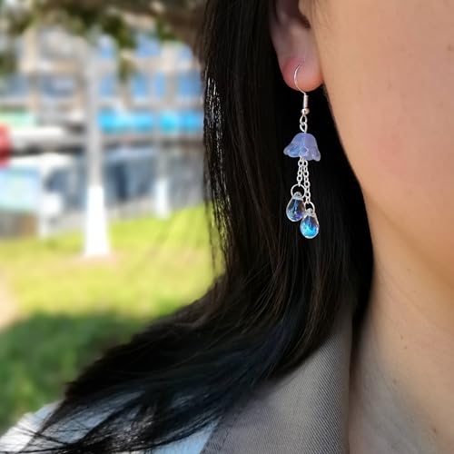 Cute Jellyfish Earrings, Czech Glass Beads Dangle Earrings, Mermaid Teardrop Earrings Jewelry Gifts For Women