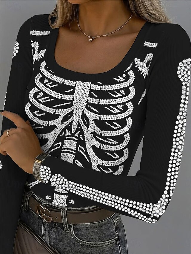 This Halloween Women's T Shirt Skulls Graphic Vintage fashionable Classic Long Sleeve Square Neck Regular Tops Daily Print White Pink Blue Green Summer Spring Fall Winter combines elegant design with practical functionality. Every detail has been carefully considered to ensure you get the best possible experience. The premium construction means this product will serve you well for years to come.