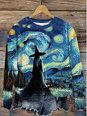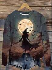 More information about Halloween Women's Pullover Sweatshirt Witch Graphic Fashion Casual Long Sleeve Round Neck Regular Tops Street Dailywear Casual Print Blue Light Grey Dark Gray Fall Winter