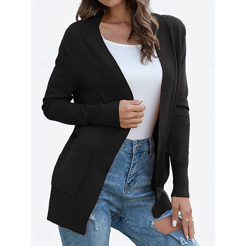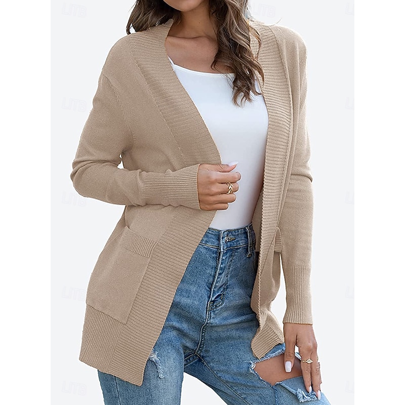 Highlights [Fabric] : Crafted from high-quality polyester, this women's cardigan offers a soft, comfortable knit fabric with micro-elasticity, providing the perfect balance of warmth and breathability for spring, fall, and winter seasons. [Fit and Style] : The cardigan features a regular fit with long sleeves, offering a flattering silhouette that ensures ease of movement. Its enduring crew neck and ribbed detailing along the edges add texture and structure, making it a versatile piece for any wardrobe. [Design Highlights] : This cardigan is designed with an open-front style and includes two practical front pockets, perfect for keeping small essentials handy. The solid color design in options of green, black, dark gray, and khaki, adds a touch of elegance and simplicity to any outfit. [Occasions] : Ideal for daily casual wear, this cardigan is perfect for layering over a simple top with jeans or trousers. It's suitable for any occasion, from relaxed weekends to casual gatherings, providing a chic and comfortable look. [Size Range] : Available in a variety of sizes ranging from S to 2XL, ensuring that you can find the perfect fit that suits your style and body type. Perfect for everyday use. finest materials and excellent craftsmanship ensure long-lasting durability.
