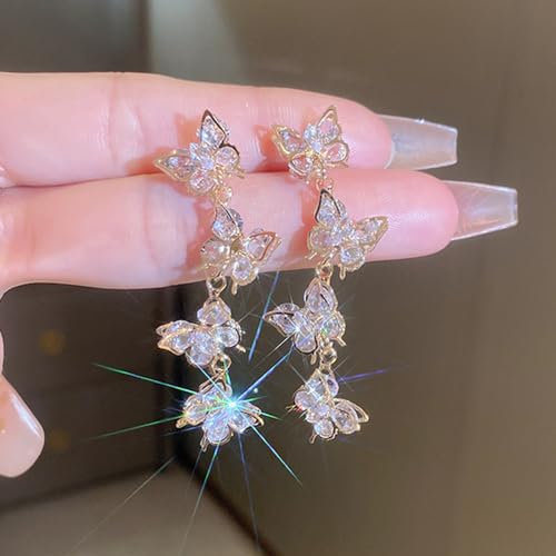 sizzling ! Sither Long Butterfly Crystal Earrings for Women Dangling Gold Butterfly Earrings Fashion Jewelry for Halloween Party Christmas Gift