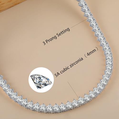 sizzling ! Gemsme 4mm Tennis Necklaces for Women - 3 Prong 18K White Gold Plated Round Cubic Zirconia vintage diamond Tennis Chain, Tennis Necklace for Women and Men, Size 16/18/20/22/24 inch