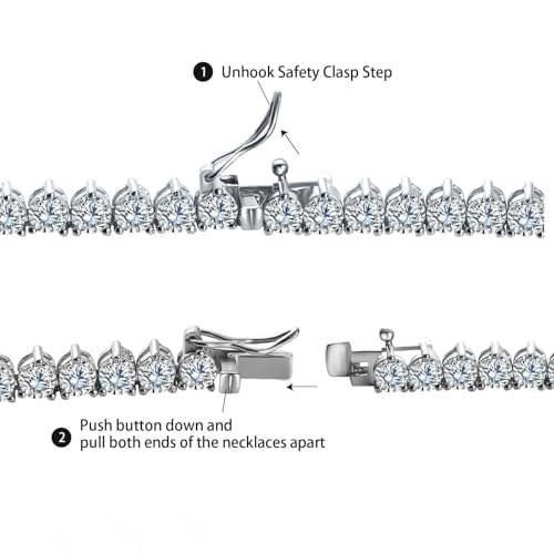 • Cubic Zirconia Tennis Necklace:Tennis necklace made of round cut AAAAA cubic zirconia,brass material and cubic zirconia inlaid links into a long tennis necklace, 18K white gold plated