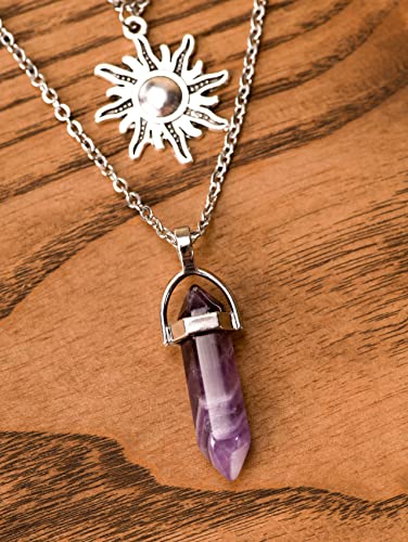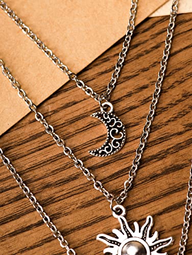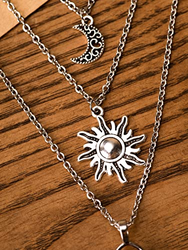 Sacina Gothic Layered Crystal Sun and Moon Necklace, Moon and Sun Pendant, Gothic Goth Emo Grunge Necklace, Goth Jewelry, Halloween Christmas Jewelry Gift For Women