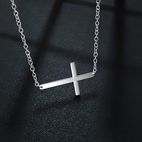 Item display length: 16 inchesMaterial: MetalMetal type: Sterling SilverClasp type: LobsterChain type: CablePREMIUM MATERIALS: The genuine 925 sterling silver metal pendant and chain are highly polished and hand-finished for a lustrous, sophisticated look.EVERYDAY STYLE: The sideways cross necklace features a delicate, minimalistic design that looks stunning alone or as part of a layered style.BUILT FOR LIFE: The sterling silver will not tarnish or discolor under the high luster rhodium finish and is guaranteed to look charming for years to come.DELICATE DESIGN: The lightweight cross pendant is just over 1-inch long and is anchored on a delicate 16 - 18 adjustable length cable chain with a lobster-clasp closure.LUXE PACKAGING: Give a meaningful gift for birthdays, Christmas, graduation, Easter, or any other holiday with a premium sterling silver necklace and beautiful gift box package. Perfect for everyday use. superior materials and excellent craftsmanship ensure long-lasting durability.