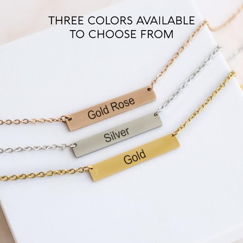 • LASER ENGRAVED - NOT PRINTED: Our pieces are meticulously laser engraved to ensure enduring, yet delicately crafted customization. This bar necklace offers the option to engrave any text you desire on both the front and back. Whether it's letters, initials of couples or friends, sentences, inspirational messages, special characters, coordinates, roman numerals, dates, latitudes, longitudes, and beyond, the possibilities are endless.