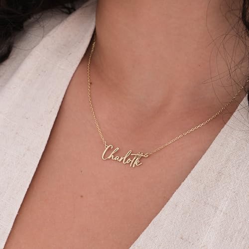 More information about 14K Solid Gold Personalized Name Necklace For Women, Name Necklace Custom, Nameplate Customized Pendant, Personalized Jewelry, 14K Solid Gold and Gold Plated Options Gift for Her