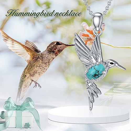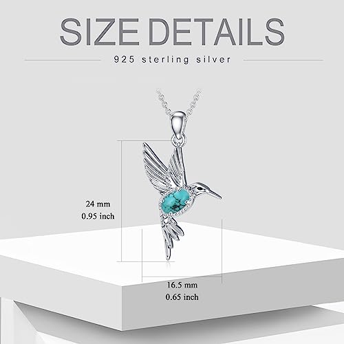 Material: Sterling SilverMetal type: Sterling SilverChain type: CableGem type: TurquoiseBrief content visible, double tap to read full content. Full content visible, double tap to read brief content. Bundles with this item Previous page BETHZA Hummingbird Necklace and Earrings -12% $165.99 Was: $188.98 BETHZA Hummingbird Necklace Earrings Rings Set -13% $219.99 Was: $251.97 Next page See all bundlesDESIGN - Hummingbirds are the embodiment of luck, strength, and freedom. Hummingbirds have long been portrayed as healers, lightbringers, and spiritual helpers who bring luck and love to those they encounter. Wear this turquoise hummingbird necklace, good luck will always be on your sideMATERIAL - The hummingbirds necklace is crafted in real 925 sterling silver. No irritation to the skin.It makes for quite a comfortable fit for people with sensitive skin, and it will not make your skin green or blackNATURAL GEMSTONE - The hummingbird necklace set with natural turquoise, and every gem's color/shade/matrix will vary. Turquoise is believed to bestow Wisdom, Good Luck, Fortune & Hope to the wearerFOR HER - This sterling silver hummingbird necklace is exceptional and bring luck to your loved ones. Suitable for hummingbird lovers, women, mother, wife, friendAFTER SALE - We are sure you will love our hummingbird jewelry, and if for any reason you are not happy with your choice, please contact us Perfect for everyday use. superior materials and excellent craftsmanship ensure long-lasting durability.