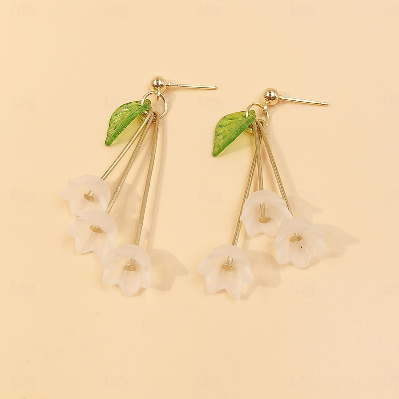 Highlights [Fabric] : The earrings are crafted from high-quality alloy, featuring a delicate and elegant design that combines gold-tone metal with translucent floral accents. The petals are reminiscent of frosted glass, providing a soft and ethereal look. [Design and Structure] : These earrings showcase a drop style, where gold-tone metal hooks gracefully suspend floral elements. The addition of green leaf-shaped accents offers a nature-inspired touch, creating a harmonious balance between the metallic and natural aspects. [Design Highlights] : Incorporating a geometric shape with intricate petal motifs, these earrings exude a luxurious and stylish flair. The gold-toned hardware pairs beautifully with the subtle white and green hues, delivering a sophisticated and fashion-forward appearance. [Occasions] : Perfect for weddings, evening parties, dates, birthday celebrations, or a day at the beach, these earrings are versatile enough to enhance both casual and formal outfits. Their lightweight design ensures comfort for extended wear, making them suitable for daily as well as special occasions. [Size Notice] : Available as a single pair, these earrings are designed exclusively for women, effortlessly combining style with elegance. Ideal for those seeking a fashionable and cute accessory to complement a variety of attire. Perfect for everyday use. top-grade materials and excellent craftsmanship ensure long-lasting durability.